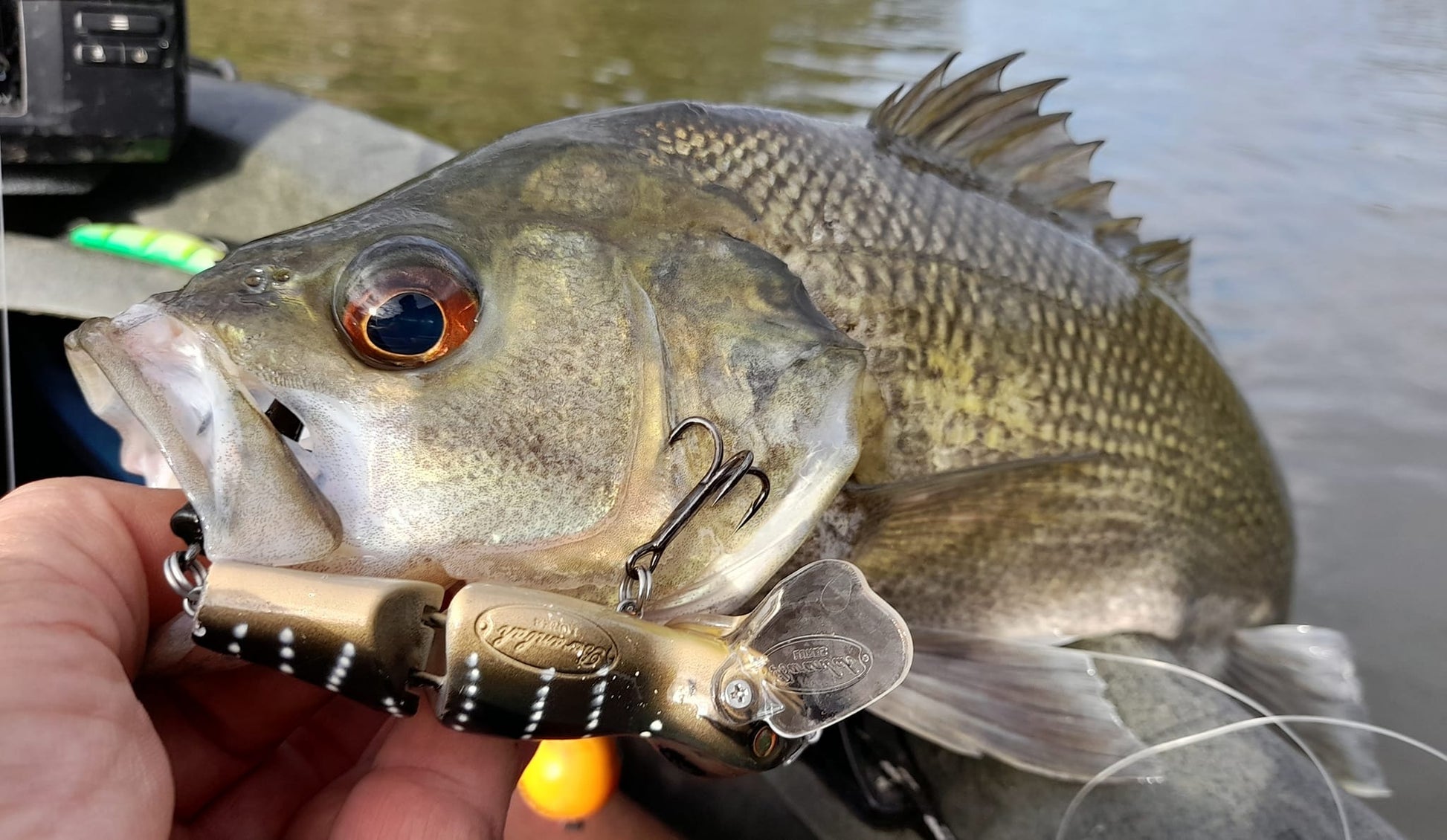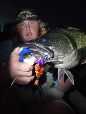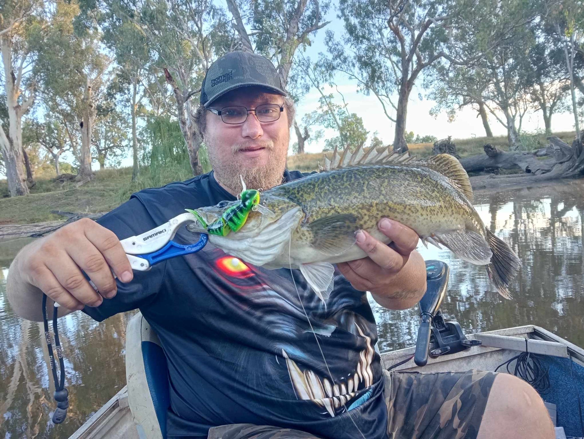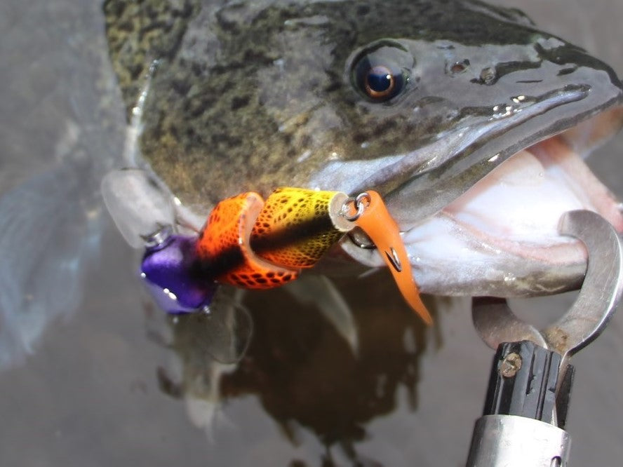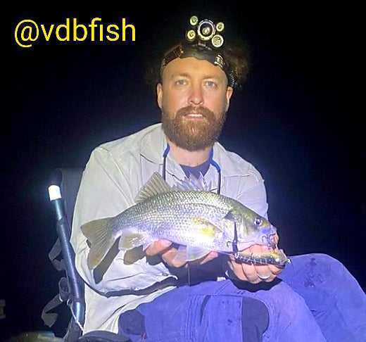 The Baby Bidjiwong has a TPE tail to improve its natural appearance and add profile. The tail can be easily changed if damaged. At 21g (3/4 Oz), it is easy to cast, and the action works well at a wide variety of speeds. Fitted with quality hooks and rings that give maximum hook exposure without fouling. The Baby Bidjiwong has a great action and is built tough enough to catch a giant 131cm murray cod in Copeton dam - see pics.