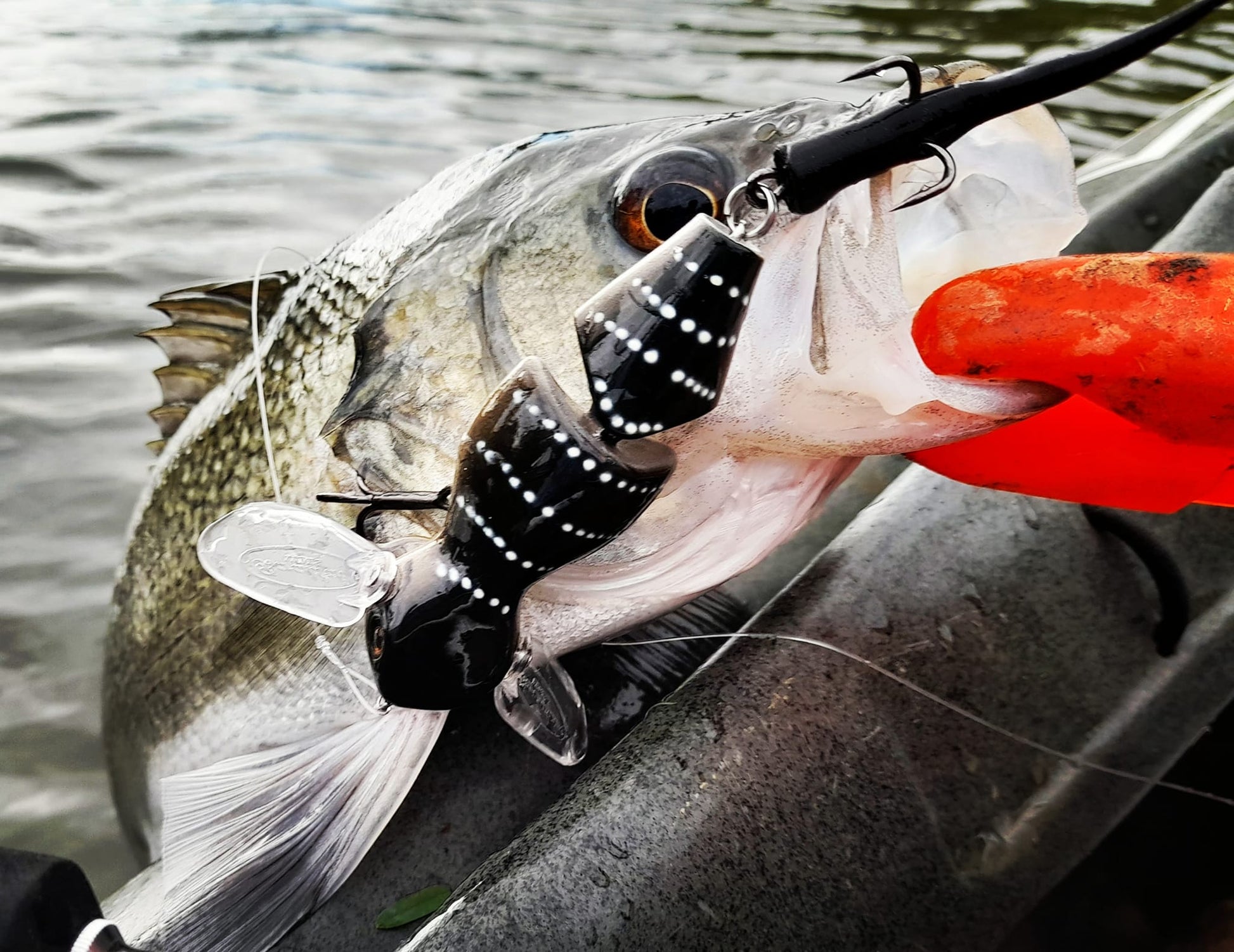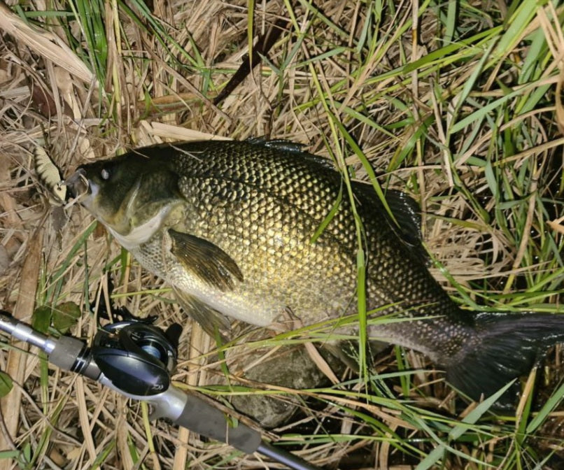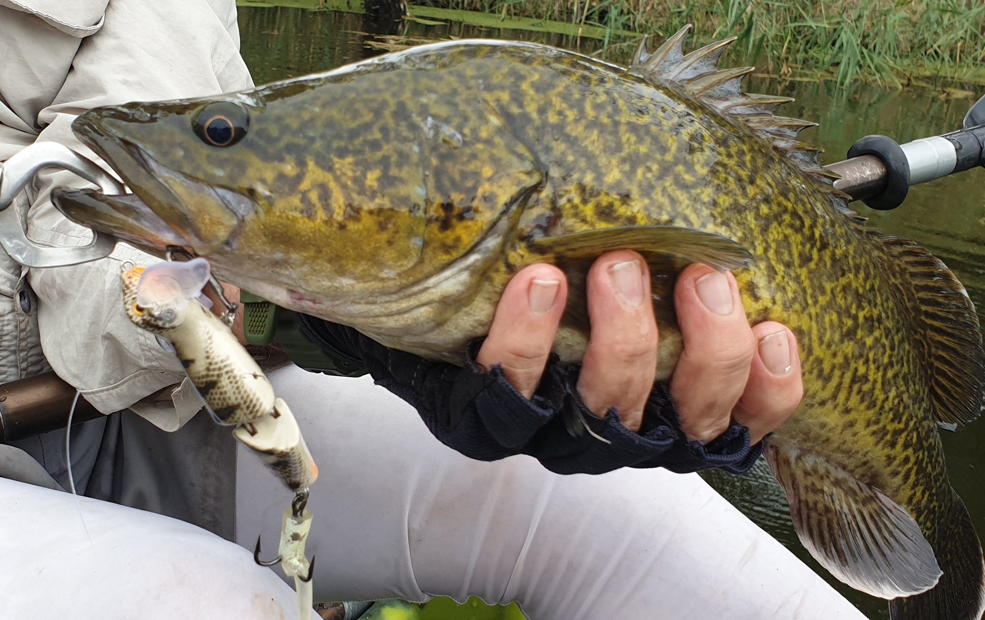 The Baby Bidjiwong has a TPE tail to improve its natural appearance and add profile. The tail can be easily changed if damaged. At 21g (3/4 Oz), it is easy to cast, and the action works well at a wide variety of speeds. Fitted with quality hooks and rings that give maximum hook exposure without fouling. The Baby Bidjiwong has a great action and is built tough enough to catch a giant 131cm murray cod in Copeton dam - see pics.